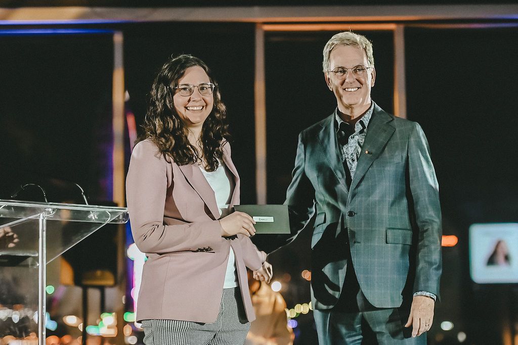 Dre Sandra Isabel avec le vice-doyen de la Faculté de Médecine Dr Jacques Simard. Crédit photo Génome Québec.